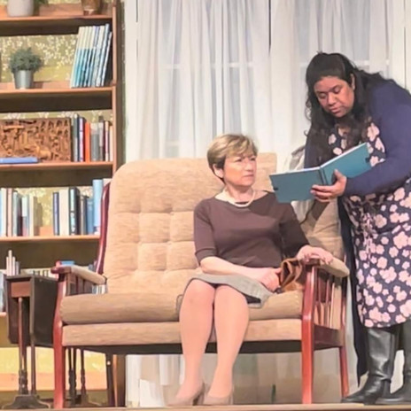 I commend Ben Kavanagh for stepping in at the last moment to play the role of 'Alan Haigh' because the original cast member, Chris Bartlett, was taken ill. We at the AmDram Observer wish Chris a speedy recovery. Anyone who goes on stage to read in for a part in these circumstances should be commended, but Ben's performance was exceptional. Despite only meeting the cast hours before going on stage, he was funny, aware, and reactive to the other characters. The chemistry between Ben and his sparring partner, Jo Ridge as Mary Haigh, was comical and also worked well.